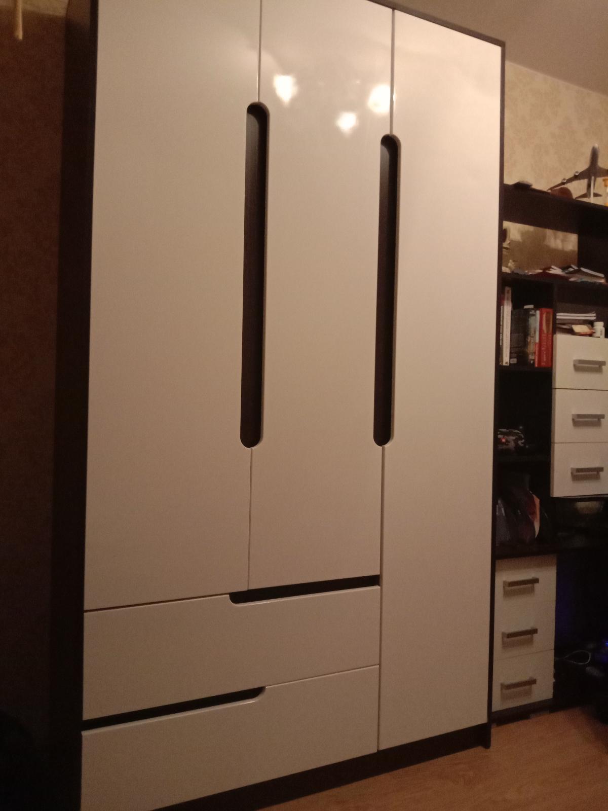 Заказала шкаф в небольшую детскую комнату. Привезли быстро,собрали.  Описание полностью соответствует действительности. Цвет фасада шикарный. Очень нарядный, вместительный шкаф. Пользуемся четвертый месяц. Очень довольны.