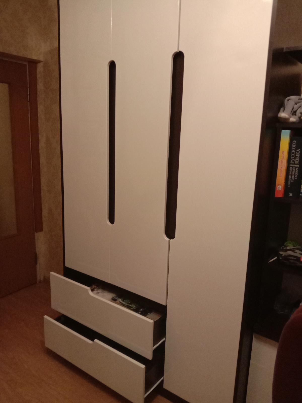 Я очень довольна покупкой, купила со скидкой за 14тыс. Его изготовили специально под мои размеры ниши. На заказ в других фирмах было в разы дороже. Это уже второй шкаф от этого магазина. Понятно, что это эконом сегмент и только фасады из МДФ, но меня асе устраивает. Для любителей встроенной мебели самое то. Красивые белые фасады, качество отличное, можно выбрать фурнитуру из нескольких вариантов. Дополнительно взяли улучшенные механизмы для ящиков, это за доп стоимость, конечно, ездят плавно, без нареканий. Муж собрал легко.  Спасибо большое! Рекомендую!