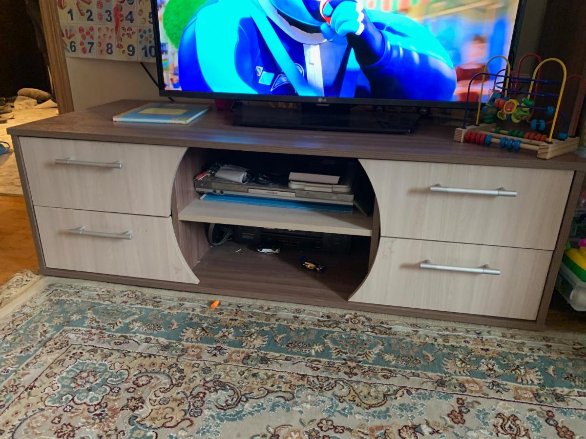Заказывали такую тумбу на дачу (заказ №394514). Нужно было что-то вроде гибрида комода и журнального стола, и при этом не загромождать пространство в комнате. Тумба "Винница" показалась очень подходящей для этой цели.  Воспользовавшись опцией изменения параметров, сделали идеальный, на мой взгляд, вариант. Тумба получилась достаточно высокой. Радует большая площадь открытых поверхностей в свободном доступе. Вроде и простой, но оригинальный дизайн.  Она довольно массивная и крепкая. Цвет - орех Гварнери. За такую цену - совсем отлично! Уже полгода служит, все прекрасно!