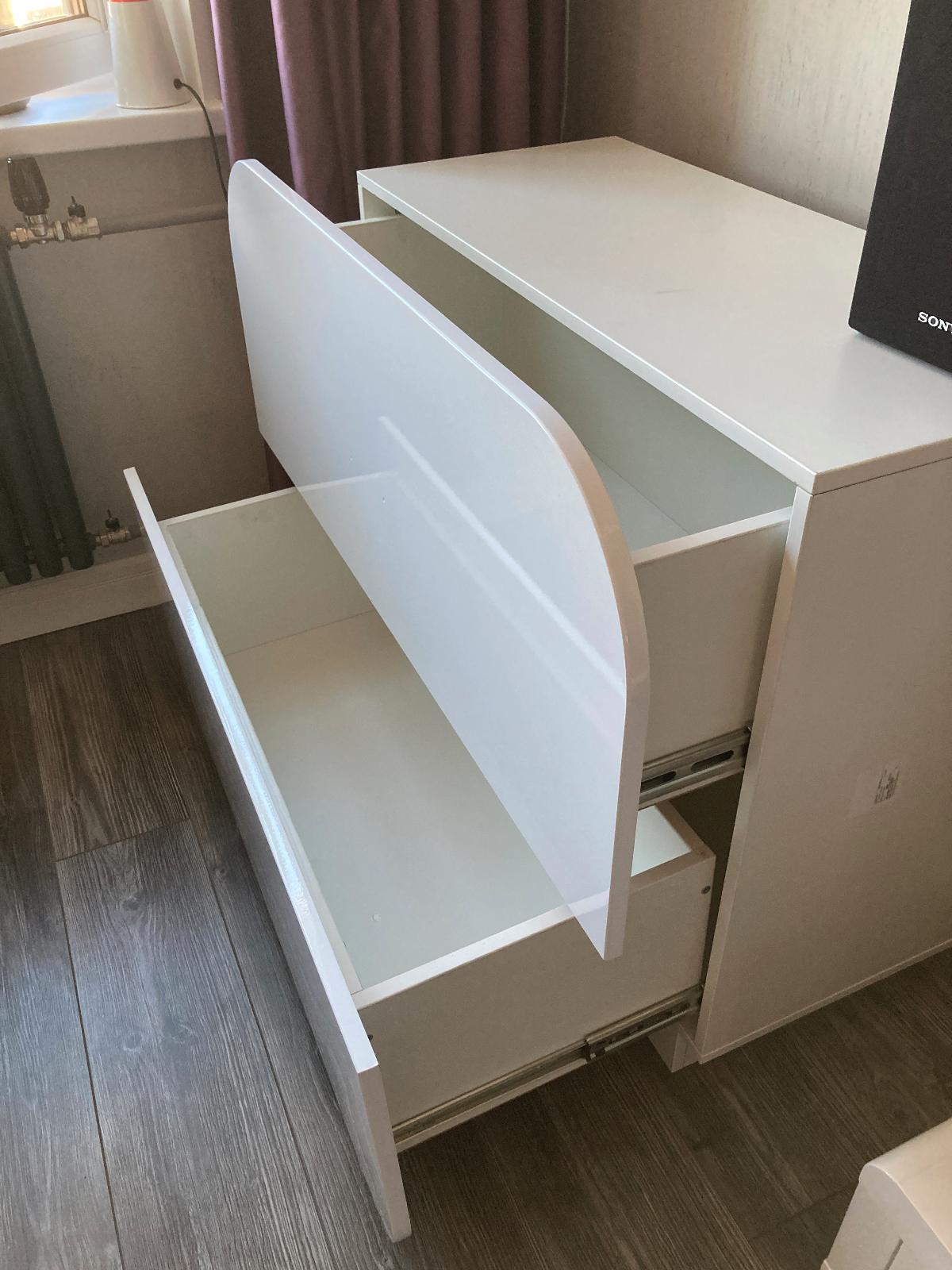Цена отличная. Решил не устанавливать ручки на этот комод (они в комплекте).  Чтобы совпало по дизайну. они немного портят внешний красивый вид. Хорошо что нет дырок в глянцевых фасадах. Сделано хорошо качественно, но есть небольшие неаккуратные мелочи, по краям могут быть видна фанера или шляпки от шурупов. Но за эти деньги это супер. Ужасные наклейки-маркировка, которые иногда очень плохо отдираются. Обидно что их клеят на внешнюю сторону деталей.  Это важно улучшить.С доставкой бывают проблемы, везут 2-3 дня. Упаковка добротная! Услугой Сборки воспользовался.  Сторонняя фирма делает, молодцы.