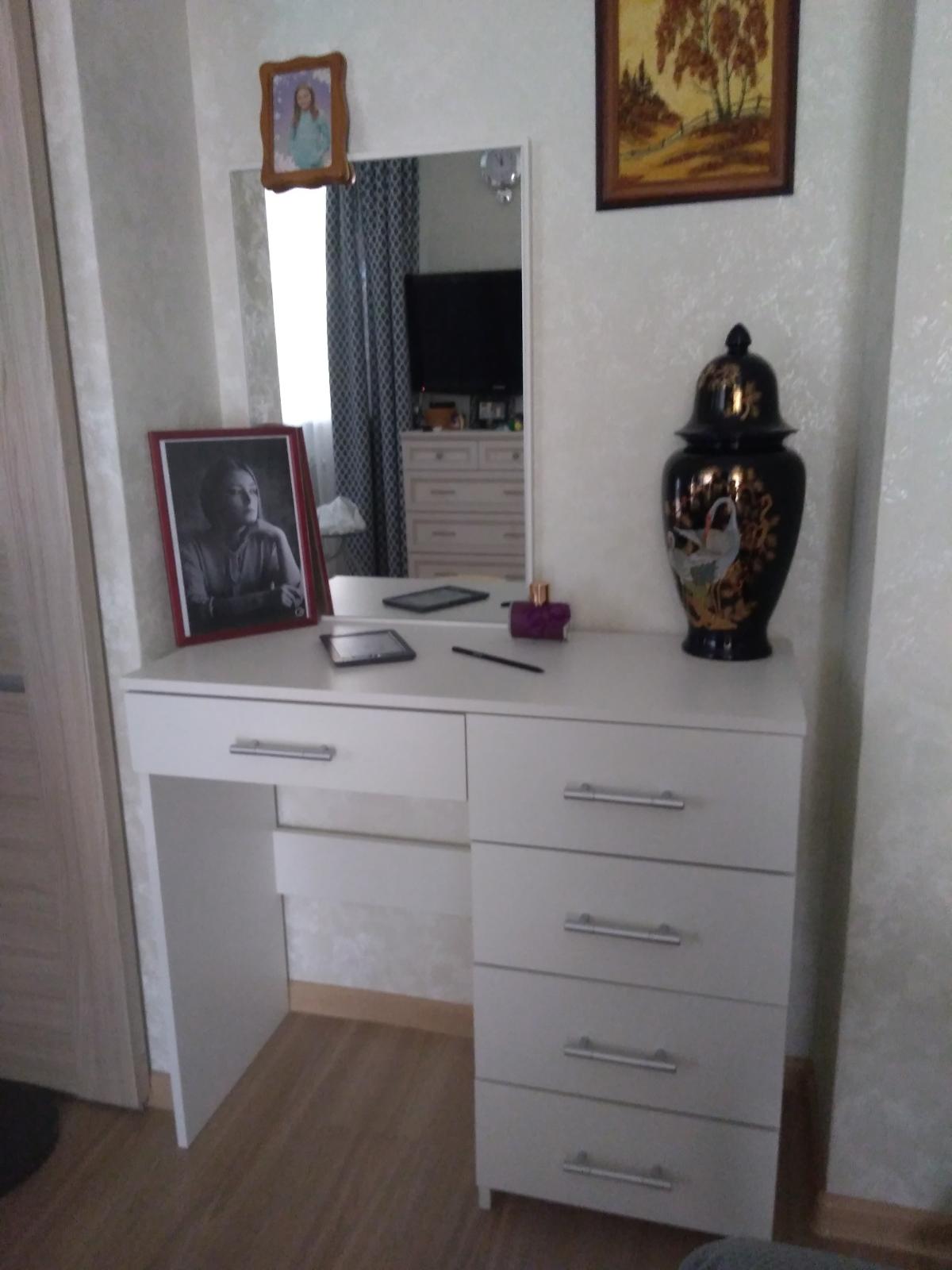 Долго искали туалетный столик нестандартного размера. Очень обрадовались, когда увидели подходящую модель по размеру и цвету. Менеджер помог определиться с  выбором. Доставили раньше срока! Качеством и сервисом остались довольны.  Столик идеально вписался в интерьер. Большое спасибо за хорошо выполненную работу!