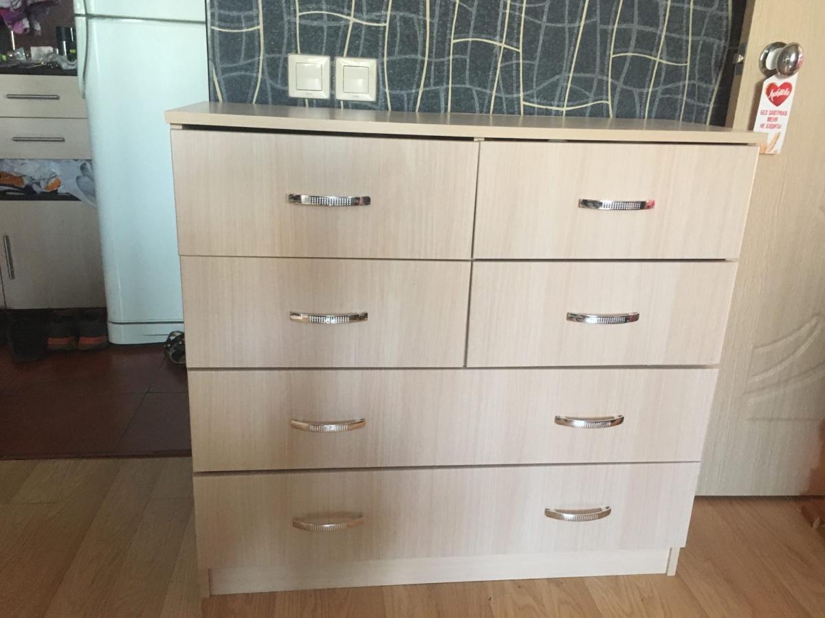 Выбирали тумбочку прикроватный,чтоб по цвету была одинаковой с кроватями.Выбрали Лотос ВМС.Цвет вишня.Изготовили очень быстро.Сделано очень хорошо.Понравилось что под направляющие сделана разметка,не нужно самому вымерять.На каждую деталь наклеена бумажка с названием.Трудностей со сборкой не возникло.Бумажки с названием,на мой взгляд можно было по размеру и поменьше наклеить.Доставили быстро.
