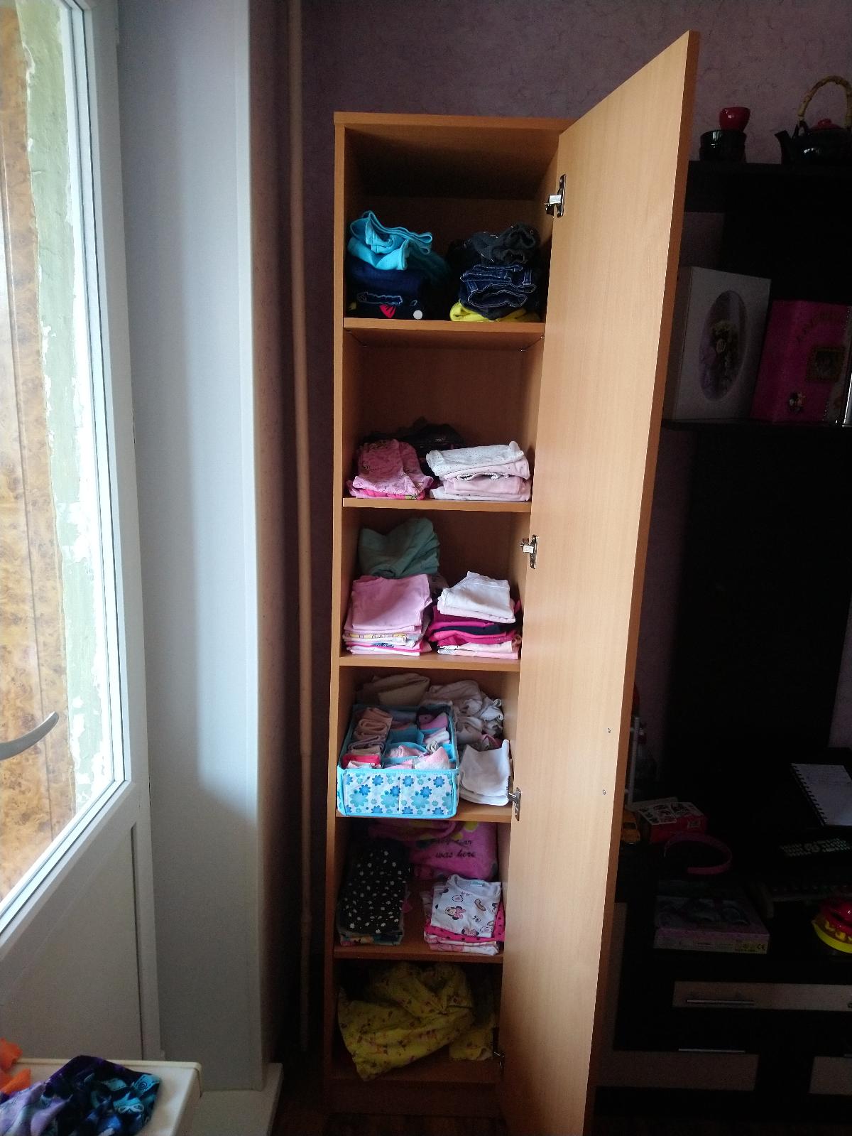 Шкаф отличный, брали для дочери, полки просторные. Высоту подбирали, чтобы мне не тянуться на цыпочках до верхней полки, качество соответствует описанию, ни сколов, ни царапин. Вообще много чего уже заказывала на этом сайте, буду ещё)) цена-качество радуют