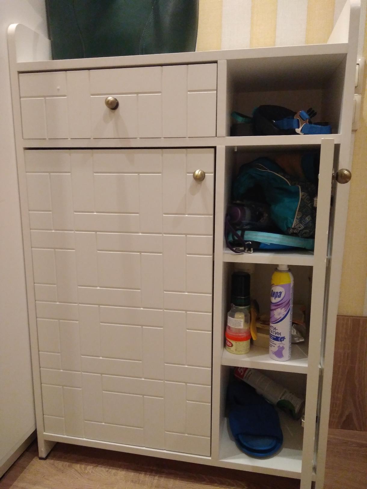 Стильная тумба. Взяла белую, отлично вписалась в коридор. Функциональная, но для большеразмерной обуви не подойдёт. Полки съёмные, можно убирать и ставить сапоги. Из минусов Отсутствие инструкции по сборке. Собирала сама.в целом, довольна покупкой.335594