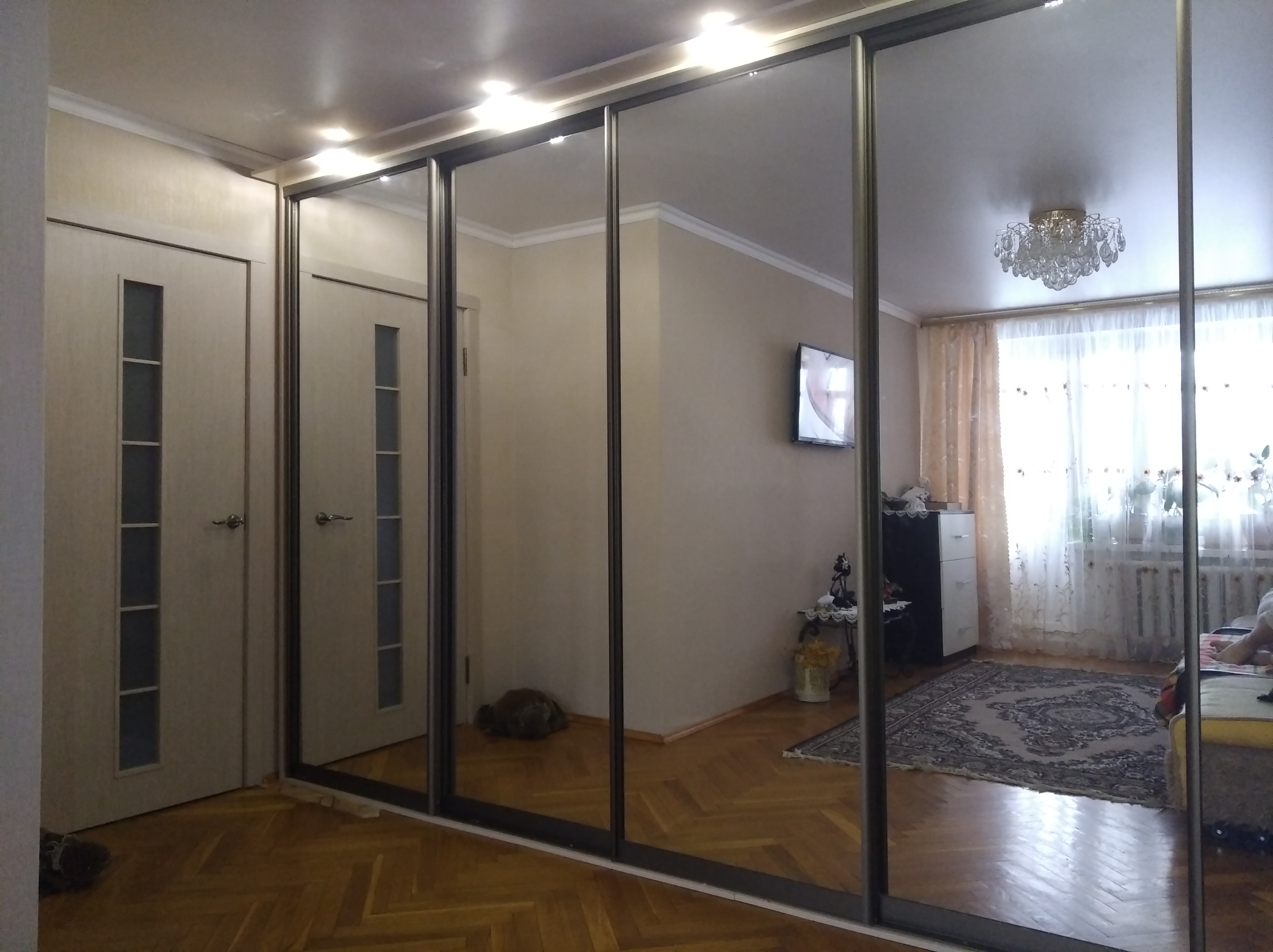Искали четырехметровый шкаф, который бы вписался в нишу и вместил всё разом. Долго искали по различным сайтам, смотрели в мебельных магазинах и никак не могли подобрать по параметрам. Наткнувшись на сайт bestmebelshop проблема была решена, порадовала цена и сроки изготовления. Шкаф состоит считай из пяти отделений по 80 см шириной, плюс в том, что компановку можно подобрать самим. Выбор цвета фурнитуры тоже порадовал.  Собрали без проблем.