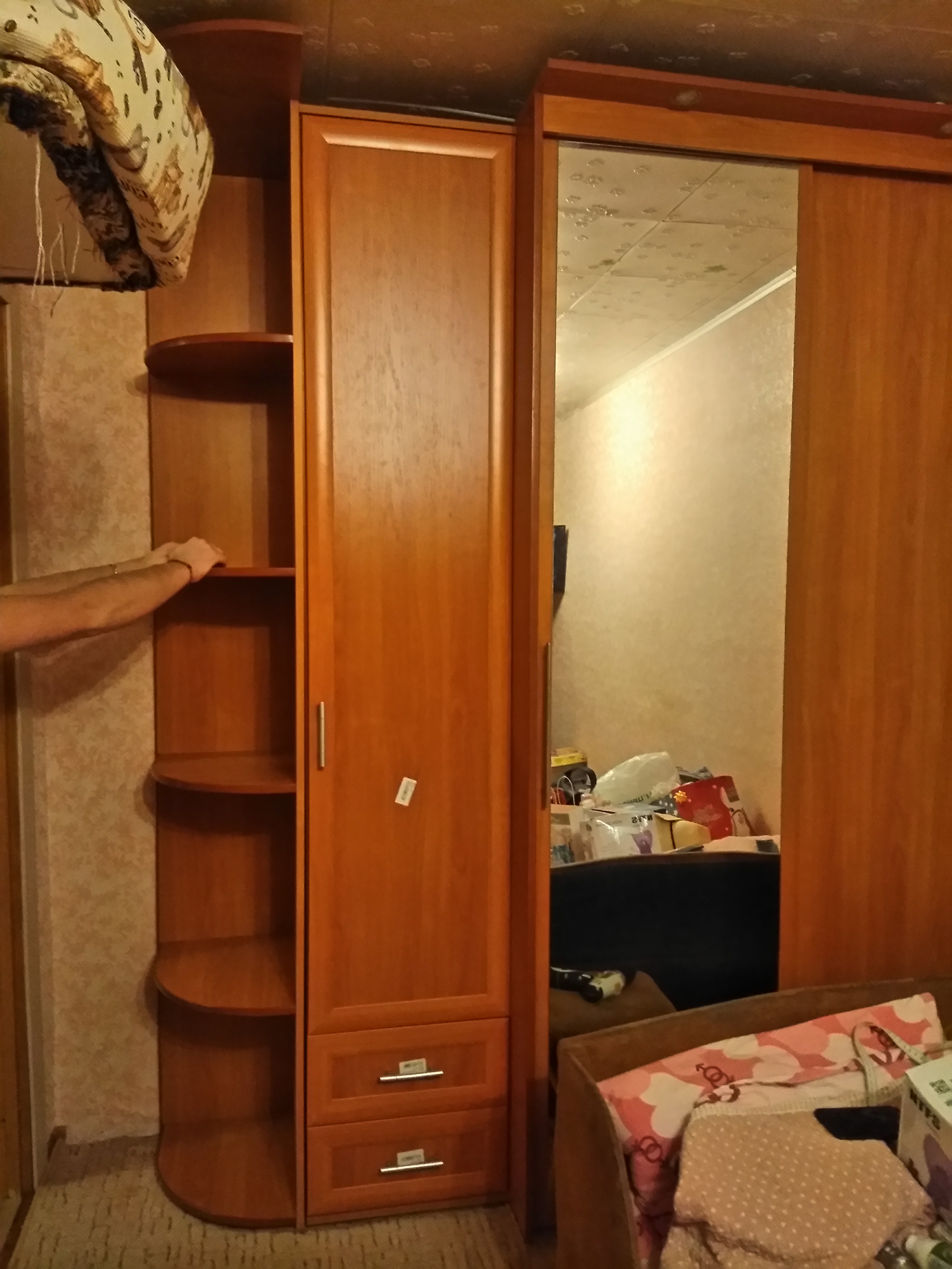 Начиталась плохих отзывов в интернете, боялась заказывать,в основном жалуются на недокомплект ,заказала на свой страх и риск ,получился заказ в новогодние праздники 5 января, а 11 января уже привезли мой шкафчик. Единственный магазин,где можно было по своим размерам сделать, это такооой плюс! , Цвет идеально совпал со старым шкафом купе, вставили его между основным шкафом и угловой полкой,идеально вписался в комнату. Все этапы заказа прошли отлично,много раз из магазина звонили и заранее предупреждали и о готовности и о доставке,и доставщики сами несколько раз отзванивались поэтапно: завтра приедем -выехали- будем через час. все так гладко прошло,напрасно переживала. И огромный плюс,оплата наличными при получении,ничем не рисковала практически. Единственное что боялась не хватит каких-то полок , в итоге все норм,смотрю на шкаф не нарадуюсь. Впечатления только положительные. По своим параметрам и размерам за шкаф заплатила 5524 руб. Спасибо что есть такой магазин.