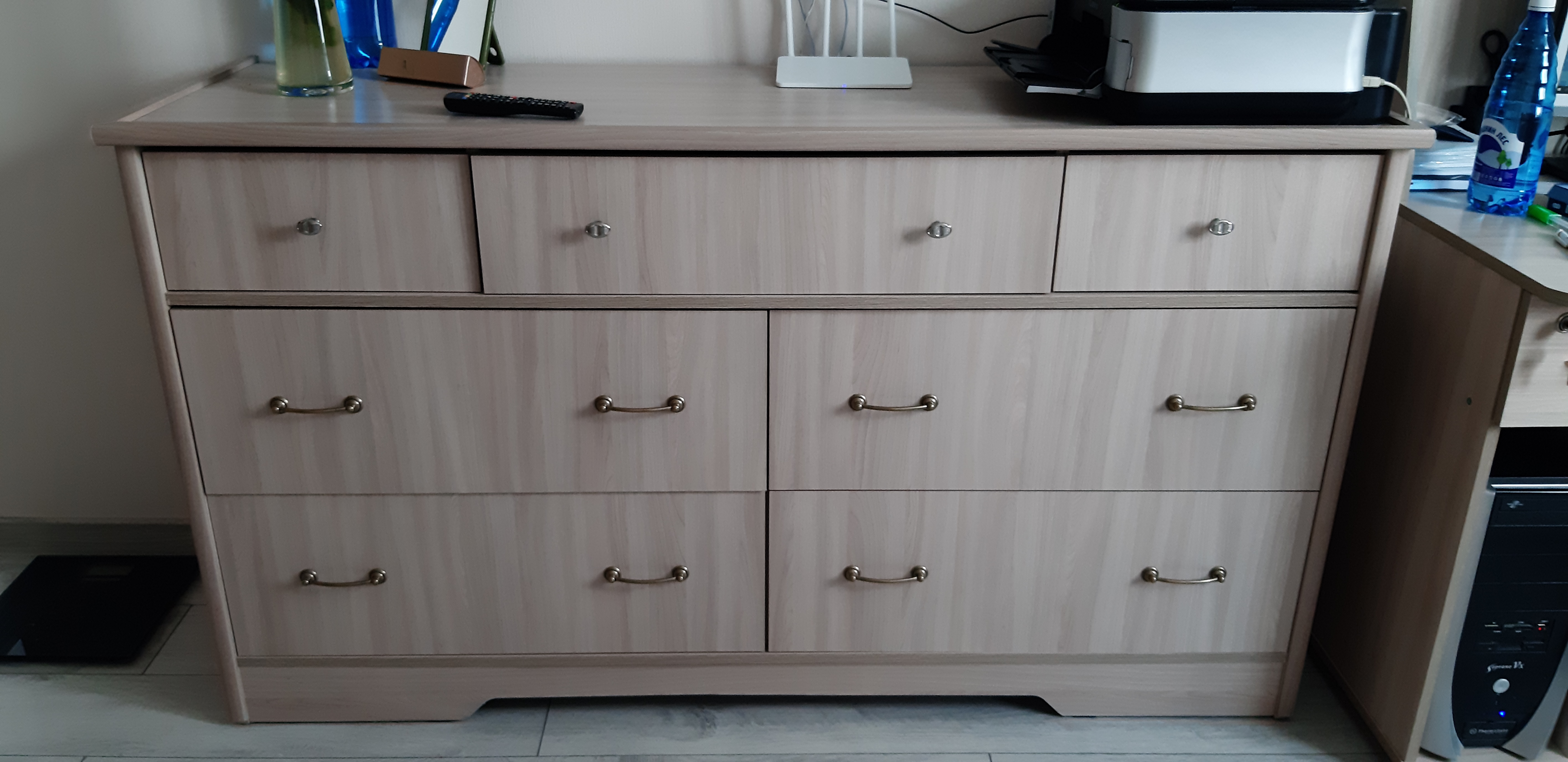 Приобрели данный комод пару месяцев назад (заказ 00000214376) и очень довольны! Качество хорошее. Больше всего порадовала возможность изменения размеров изделия. Искали шкаф в дополнение к икеевскому( на фото справа), и только в данном магазине сумели подобрать то что нужно чётко по размерам. С таким выбором цветов и размеров можно без проблем подобрать мебель под свои запросы. Изготовили быстро, доставили тоже. Сборку не заказывали, муж справился без проблем. В общем качественно, быстро, не дорого и не сложно для самостоятельной сборки. Пять баллов по всем параметрам. Спасибо!